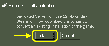 A dialog box will appear, asking you if you wish to install HLDS. Click on the install button.